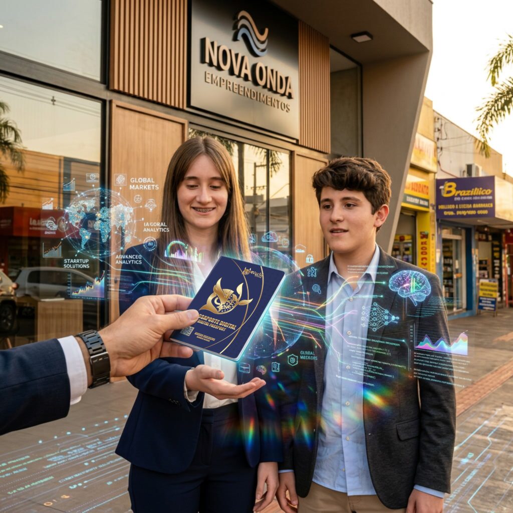 Não limitamos nossos alunos ao bairro ou à cidade. Nós ensinamos o uso da IA para quebrar barreiras linguísticas e culturais. O aluno entende que seu mercado é o mundo. Ele aprende a vender produtos e talentos brasileiros para o exterior, ganhando em moedas fortes e expandindo sua visão de mundo.